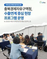 홈 홍보마당 카드뉴스 카드뉴스 sns 공유 트위터 공유하기 페이스북 공유하기 카카오스토리 공유하기 블로그 공유하기 URL복사 인쇄하기 게시물 검색 제목 내용 검색 총 40건 [ 1/5 페이지 ] 충북경제자유구역청 집중육성분야 알아보기 작성일 : 2026-02-03 조회 : 58 청주에어로폴리스3지구 토지보상 본격 시작 작성일 : 2026-02-03 조회 : 47 투자자들이 먼저 알아본 충북경제자유구역청 작성일 : 2026-02-03 조회 : 34 2025 제천국제한방천연물산업엑스포에서 수출연계 중심 현장 프로그램 운영 작성일 : 2026-02-03 조회 : 38 청주 에어로폴리스지구 입지강점 작성일 : 2025-11-14 조회 : 84 청주에어로폴리스 입주기업 보조금 지원사항 안내 작성일 : 2025-11-14 조회 : 67 청주에어로폴리스 입주 외국인투자기업 규제 완화 사항 안내 작성일 : 2025-11-14 조회 : 70 청주에어로폴리스 입주기업 세제감면 지원사항 안내 작성일 : 2025-11-14 조회 : 65 이전 페이지12345 다음 페이지