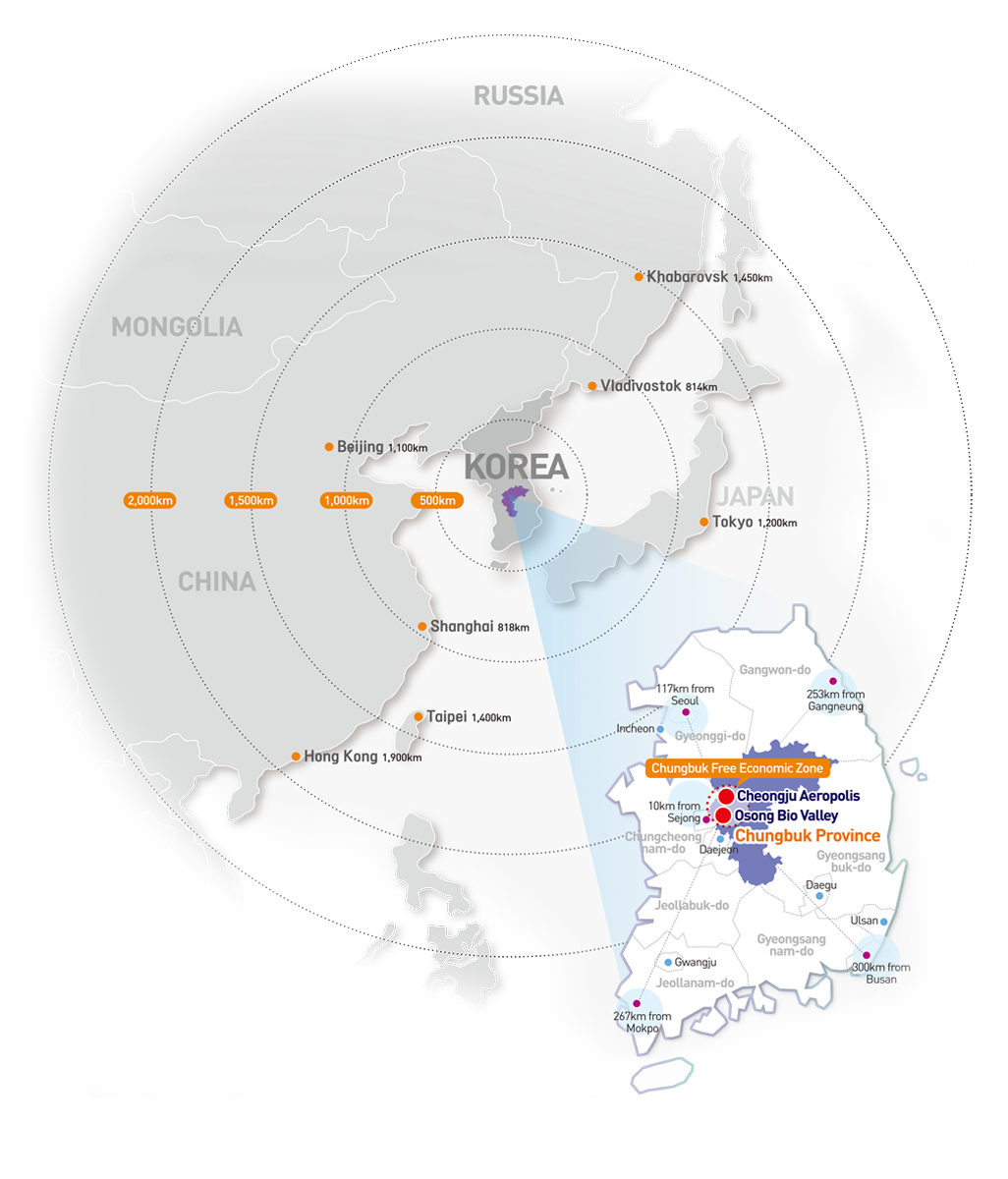 Located in the central inland region of Korea, Chungbuk is a major transportation hub with the shortest travel times to all parts of the country. It serves as the core of IT and BT convergence industries, having built clusters of next-generation strategic industries such as solar energy, semiconductors, and biotechnology. It is also emerging as a hub of the Northeast Asian aviation maintenance (MRO: Maintenance, Repair and Overhaul) industry — this is the Chungbuk Free Economic Zone (CBfez).