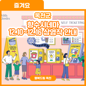 향수시네마 12.1012.16 상영작 안내 안녕하세요! 행복드림 옥천 입니다! 매주 수요일은 옥천 영화관 향수시네마 상영작을 안내해 드리고 있습니다! 많은 분들이 기다렸던 이번 주 개봉작과 상영작을 함께 알아볼까요? 12월 10일(수) 개봉 영화 더 러닝맨 15세 이상 관람가 | 2025년 12월 10일 | 액션 | 133분 독점 기업 네트워크의 지배 하에 모든 것이 통제되는 미래 사회. 직장에서 해고된 벤 리처즈(글렌 파월)는 아픈 딸의 약값을 마련하기 위해 최고의 시청률을 자랑하는 리얼리티 쇼 더 러닝 맨에 참가한다. 30일간 끝까지 살아남으면 10억 달러의 상금이 주어지는 서바이벌 게임 더 러닝 맨. 하지만 잔혹.......