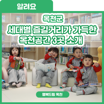 세대별 즐길거리가 가득한 옥천공간 3곳 소개 안녕하세요! 행복드림 옥천 입니다! 날씨가 점점 추워져 밖에 나가기 망설여지 지만 그렇다고 집에만 머물 수는 없죠! 옥천에는 찬바람 속에서도 마음을 따뜻하게 해줄 문화예술 공간이 많습니다. 가족과 친구는 물론 혼자서도 다양한 프로그램을 즐기고 조용히 책을 읽을 수 있는 매력적인 공간을 소개합니다. 옥천 문화예술 공간에서 겨울을 즐기다 모든 세대가 만나는 문화의 중심 옥천가양복합문화센터 옥천가양복합문화센터는 가양도서관, 가양국민체육센터, 가양생활문화센터가 모인 복합문화 공간이다. 지하 1층 주차장은 주민에게 상시 개방되며, 1층에는 어린이자료실과 국민체육센터.......