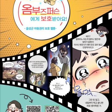 아동의 권리를 위해 음성군이 함께 하겠습니다! 안녕하세요 오늘은 아주 고퀄리티의 웹툰을 가지고 왔습니다 갑자기 웬 웹툰이냐고요? 오늘 소개해 드릴 건 음성군에서 자체적으로 제작한 아동권리 보호 웹툰인데요! 여러분도 시간 나실 때 한번 꼭 보시는 걸 추천드립니다 웹툰 보러가기 저희 음성군은 다음번에도 알차고 유익한 소식으로 돌아오겠습니다! 읽어 주셔서 감사합니다 #음성 #아동권리 #웹툰 #옴부즈퍼슨 #아동보호