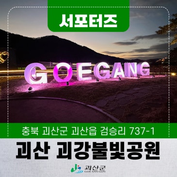 [ 괴산여행 ] 괴산군 가볼만한 곳 괴산 괴강불빛공원 해가 지고 나면 분위기가 달라지는 장소들이 있습니다. 충청북도 괴산에 위치한 괴강불빛공원 역시 밤이 되어야 비로소 매력을 드러내는 공간입니다. 괴산을 대표하는 야경 명소로 알려져 있으며, 조명이 과하지 않아 조용히 걷기 좋은 산책 코스로 사랑받고 있습니다. 공원은 괴강교 아래에 자리하고 있습니다. 교량의 기둥과 구조물은 단순한 배경이 아니라, 미디어파사드 조명이 더해져 하나의 작품처럼 연출됩니다. 강변과 교량, 빛이 함께 어우러지며 낮과는 전혀 다른 풍경을 만들어 냅니다. 넉넉하게 마련된 주차장 덕분에 차량 이용도 편리합니다. 차를 세워두고 천천히 걸으며 공원.......