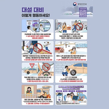 [ 괴산소식 ] 대설 대비 이렇게 행동하세요! 1. 기상정보를 수시로 확인해 대설습설에 대비 눈이 많이 쌓였을 경우 안전한 곳으로 신속히 대피 2. 내 집점포 앞 눈은 내가 치워 낙상사고를 예방하고, 미끄럼 사고 대비. 자전거,전동킥보드 등 이용금지 3. 제설작업은 주간에 2인 1조 이상, 안전 확보 후 실시하며, 심야제설, 지붕 올라가기 등 무리한 작업금지 눈이 많이 쌓였을 경우 안전한 곳으로 신속히 대피 4. 가로수, 노후 시설 등 붕괴 전도 위험구조물 접근금지 및 위험징후 포착 시 즉시 대피 후 신고 노후 축사, 임시천막,비닐하우스 등은 미리 점검보강 5. 적설결빙 도로에서는 안전거리 유지 및 서행 급제동급가속급.......