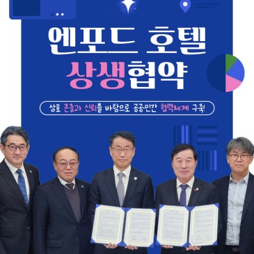 충북개발공사,엔포드 호텔 협력체계 구축 상생협약 체결 안녕하세요, 충북개발공사입니다:) 저희 충북개발공사는 청주 엔포드 호텔과 지역 상생 발전 등 내용의 업무협약을 하였습니다! 충북개발공사는 그동안 지역 균형 발전과 공공가치 실현을 목표로 다양한 사업을 추진해 왔습니다. 이번 엔프드 호텔과의 협약 역시 이러한 방향성의 연장선에 있습니다. 협약을 통해 양 기관은 지역 상생을 위한 공동 노력 사회적 가치 실현을 위한 협력 지속 가능한 발전 모델 구축 등을 핵심 목표로 삼고, 장기적인 협력 관계를 이어갈 계획입니다! 상생 발전의 기반 마련 공공과 민간이 각자의 전문성과 자원을 바탕으로 협력함으로써, 지역 발전의 기.......