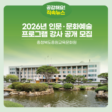 충청북도교육청 직속기관 중원교육문화원(원장 신기철)은 23일(금)까지 학생과 학부모, 지역주민을 대상으로 운영하는 2026년도 인문독서 및 문화예술 프로그램 강사를 공개 모집한다고 밝혔다. 이번 강사 모집은 중원교육문화원이 운영하는 교육 프로그램 운영을 위해 마련됐으며, 총 10개 분야 40개 프로그램에서 활동할 강사 36명을 선발할 예정이다. 모집 분야는 학교독서교육지원 책으로 북(Book)돋움 야간문화 체험동화마을 예술로놀이터 인문독서 수리과학코딩 문화예술 학부모 평생교육 중원교육도서관 프로그램 등이다. 지원 자격은 해당 분야 전공자 또는 관련 자격증 소지자, 강의 경력자 등으로 프로그램 운영과.......
