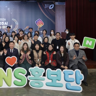 1월 28일 동부창고 34동 다목적홀에서 청주시 SNS가 새로운 시작을 맞이하는 2026년 청주시 SNS 홍보단 발대식이 열렸습니다. 발대식에서는 공모를 통해 선발된 2026 청주시 SNS 홍보단 약 60명이 함께해, 앞으로의 활동을 향한 설렘과 각오를 나누는 뜻깊은 시간을 가졌습니다. 청주시와 함께 빛날 청주시 SNS 홍보단 62명 (콘텐츠 에디터 22명, 시정홍보단 40명) 이번 SNS 홍보단 모집에는 약 6대 1의 경쟁률을 기록하며, 청주시 정책과 일상을 시민의 시선으로 전하고자 하는 참여 열기를 다시 한번 확인할 수 있었습니다. 본격적인 활동 시작! 청주를 알리는 청주시 SNS 홍보단 위촉장을 받은 홍보단은 발대식에서 올해 활동 방향과 운영.......