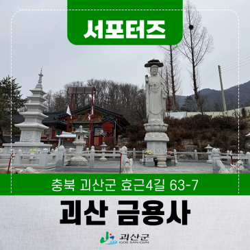 [ 괴산여행 ] 괴산군 가볼만한 곳 괴산 가볼만한곳 숨은 관광지 금용사 충북 괴산의 깊은 산자락에 자리한 금용사는 이름처럼 두 마리 용이 승천했다는 전설을 품고 있는 고찰입니다. 괴산 여행 중 처음 방문했던 사찰로 좁은 길을 따라 생각보다 많이 걸어 올라갔습니다. 금용사 입구에 도착하면 사천왕상 또는 사대천왕으로 불리는 4명의 천왕이 방문객을 맞이합니다. 사찰마다 이름이 조금씩 다르고 설명도 틀리긴 하지만 불법과 불법에 귀의하는 사람들을 수호하는 역할과 안 좋은 기운을 제거하는 의미를 품고 있습니다. 원래 사대천왕은 고대 종교에서 숭상하던 귀신들의 왕이었는데, 불교에 귀의하면서 부처와 불법을 지키는 수호신이 되.......