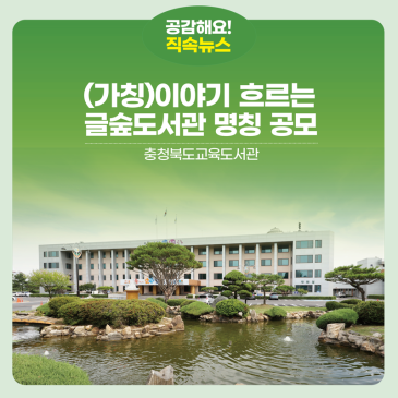 충청북도교육청 직속기관 교육도서관(관장 노재경)은 진천군 백곡면에 위치한 (가칭)이야기 흐르는 글숲도서관(이하 글숲도서관)의 공식 명칭을 정하기 위해, 5일(목)부터 26일(목)까지 3주간 명칭 공모를 실시한다. 옛 진천문학관 부지에 조성되는 글숲도서관은 총사업비 167억 원을 투입해 연면적 3,128 규모로 건립될 예정이며, 독서문학 체험 공간을 비롯해 가족독서캠핑동, 북카페, 독서상상놀이터, 사색힐링 공간 등 다양한 복합 문화공간으로 조성된다. 이번 명칭 공모는 도서관 공간의 정체성을 더욱 분명히 하고, 새롭게 조성될 글숲도서관의 의미를 함께 만들어 가기 위해 마련됐으며, 도내 학생, 학부모, 교직원은 물론 도민 누.......
