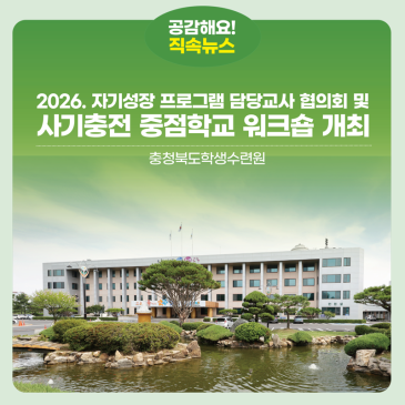 충청북도교육청 직속기관 학생수련원(원장 최영미)은 2026학년도 자기성장 프로그램의 본격 운영에 앞서 26일(목), <2026년 자기성장 프로그램 담당교사 협의회 및 사기충전 중점학교 워크숍>을 개최했다고 밝혔다. 이번 행사는 도내 초중고등학교 자기성장 프로그램 운영교 담당교사와 사기충전 중점학교 담당교사, 학교형 청소년포상제 포상담당관 등을 대상으로, 2026학년도 교육과정과 연계한 프로그램 운영 방향을 공유하고 학교 현장의 실행력을 높이기 위해 마련됐다. <사기충전 중점학교 워크숍>은 학생수련원 진천본원 강당에서 열려 공모사업 운영 방침과 연간 일정, 학교형 청소년포상제 운영 방향과 행정사항을 안내.......