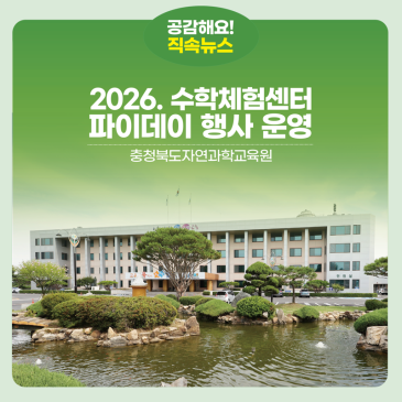 충청북도교육청 직속기관 자연과학교육원(원장 김희기)은 14일(토) <세계 수학의 날(파이데이)>을 맞아 15일(일)까지 이틀간 미래교육관 1층 충북수학체험센터에서 <2026. 수학체험센터 파이데이> 행사를 운영한다고 밝혔다. 이번 행사는 원주율 파이()의 의미를 쉽고 재미있게 체험할 수 있도록 마련됐으며, 수학체험센터를 방문하는 누구나 예약 없이 현장에서 자유롭게 참여할 수 있고 참여자에게는 다양한 기념품도 제공될 예정이다. 프로그램은 3.14초 정확하게 맞추기 파이부채 만들기 파이() 머그컵 만들기 실측을 통한 원주율 구해보기 파이 숫자 외우기 챌린지 3분 14초 카프라 높이 쌓기 등 가족 단위로 참.......