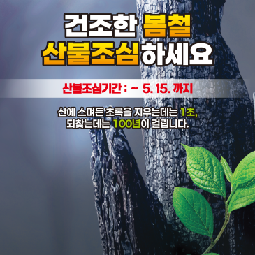 함께 하면 산불 ZERO! 2026년 3월 현재, 음성군에서는 다행히 대규모 산불 발생 소식이 없지만, 전국적으로 산불이 적지 않게 발생하며 피해 면적이 크게 늘고 있습니다 건조한 봄철을 앞두고 우리 음성군도 산불에 철저한 대비가 필요합니다. 음성군 산림재난대응단, 산불감시원, 드론감시원이 항시 순찰 중이니, 여러분의 적극적인 참여로 안전한 음성군을 만들어 갑시다! 산불 예방 4대 수칙 (꼭 지켜주세요!) 음성군은 이미 '봄철 유관기관 산불방지 대책회의'를 열고 대형 산불 대응 체계를 강화했습니다. 산림청과 협력해 헬기인력 총동원 준비 완료 음성군의 푸른 산림을 지키는 데 동참해 주세요 문의전화 음.......